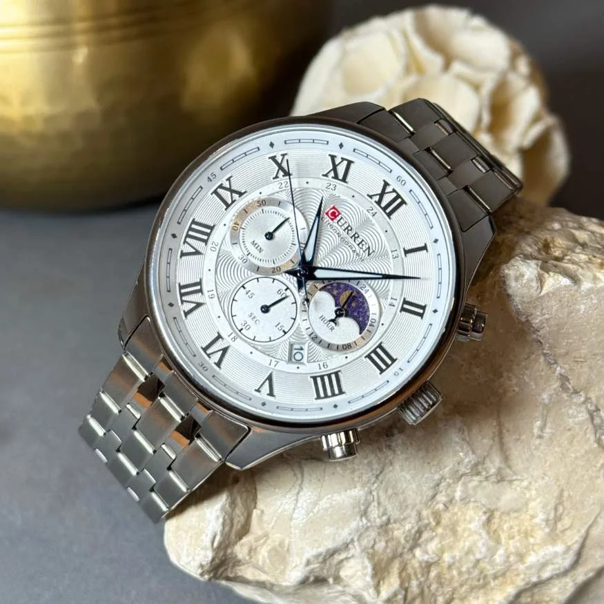 Audacieuse, fiable et conçue pour durer – vivez l’expérience de la précision avec cette montre chronographe en acier inoxydable doré, résistante à l’eau et prête pour toutes les aventures.